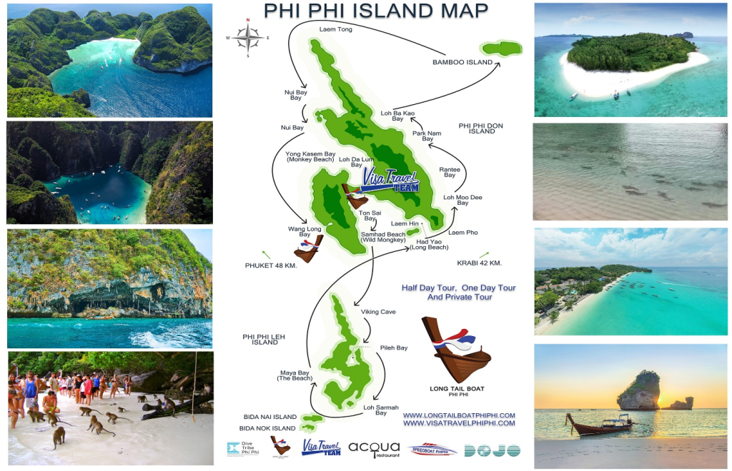 เกาะพีพี มีเนื้อที่ประมาณ 4,200 ไร่ พื้นที่ทั้งหมดเป็นเกาะ มีทั้งเนินเขา หน้าผา และหาดทรายที่สวยงาม แบ่งโดยออกเป็นสองหมู่บ้านคือ หมู่ที่ 7 (ต้นไทร) และหมู่ที่ 8 (บ้านแหลมตง) ตำบลอ่าวนาง อำเภอเมือง จังหวัดกระบี่