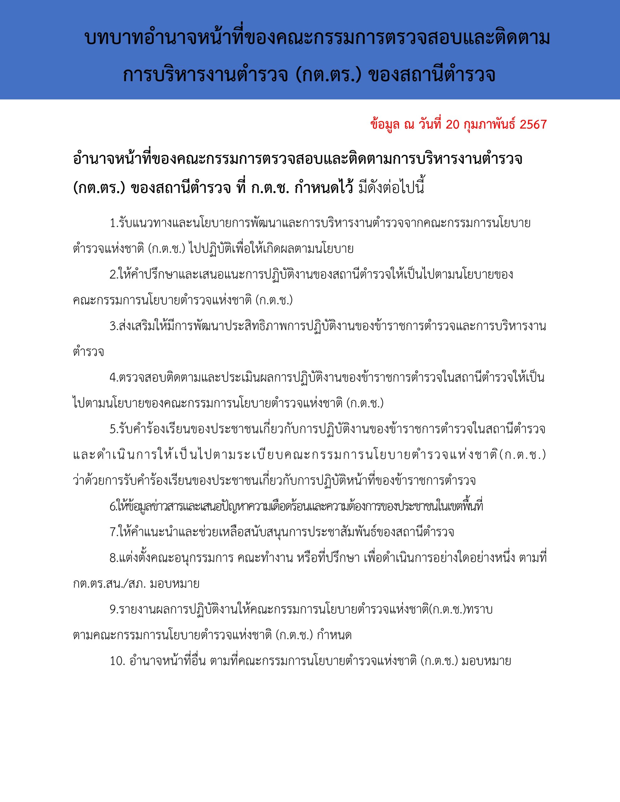บทบาท อำนาจหน้าที่ของคณะกรรมการตรวจสอบและติดตามการบริหารงานตำรวจ (กต.ตร)ของสถานีตำรวจ