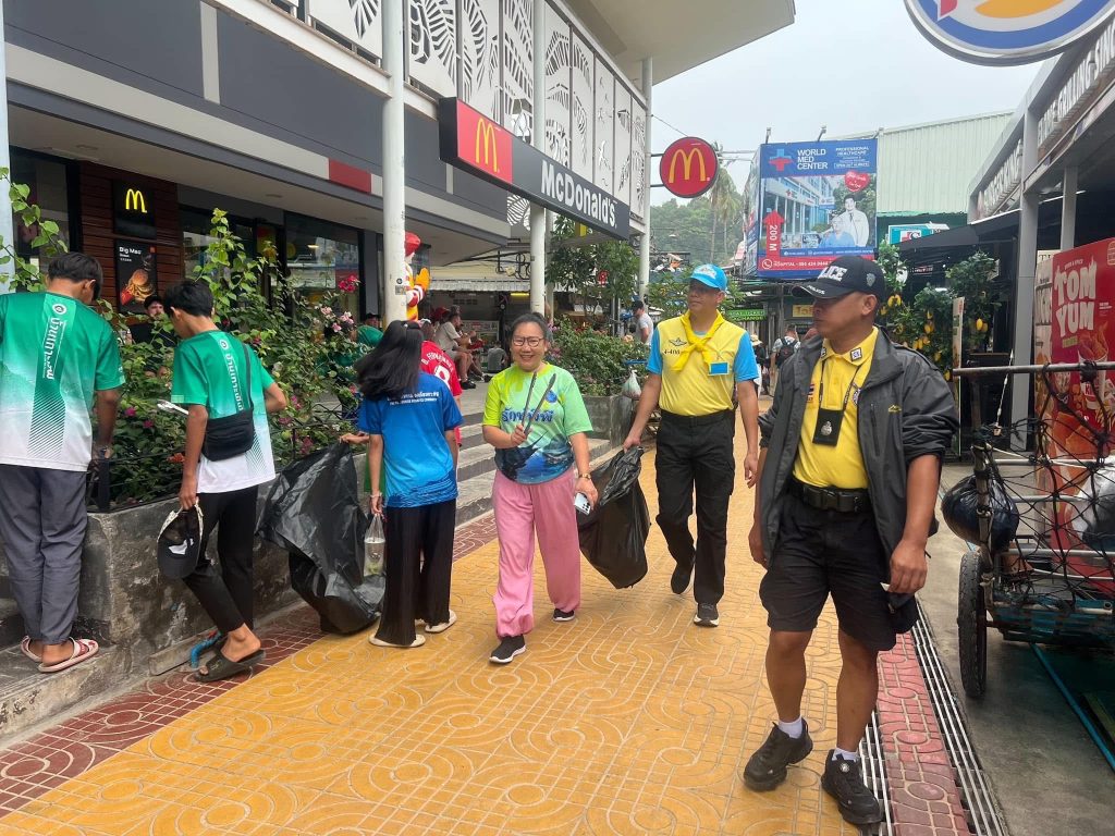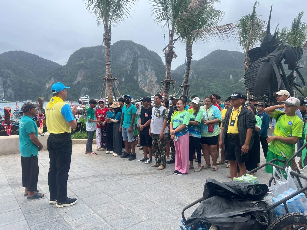 เจ้าหน้าที่ตำรวจ สภ.เกาะพีพี พร้อมด้วย เจ้าหน้าที่อุทยานแห่งชาติหาดนพรัตน์ธารา-หมู่เกาะพีพี สมาชิกกลุ่มพิทักษ์พีพี ชาวบ้านและผู้ประกอบการบนเกาะพีพี ร่วมกันเก็บขยะทั่วเกาะพีพี